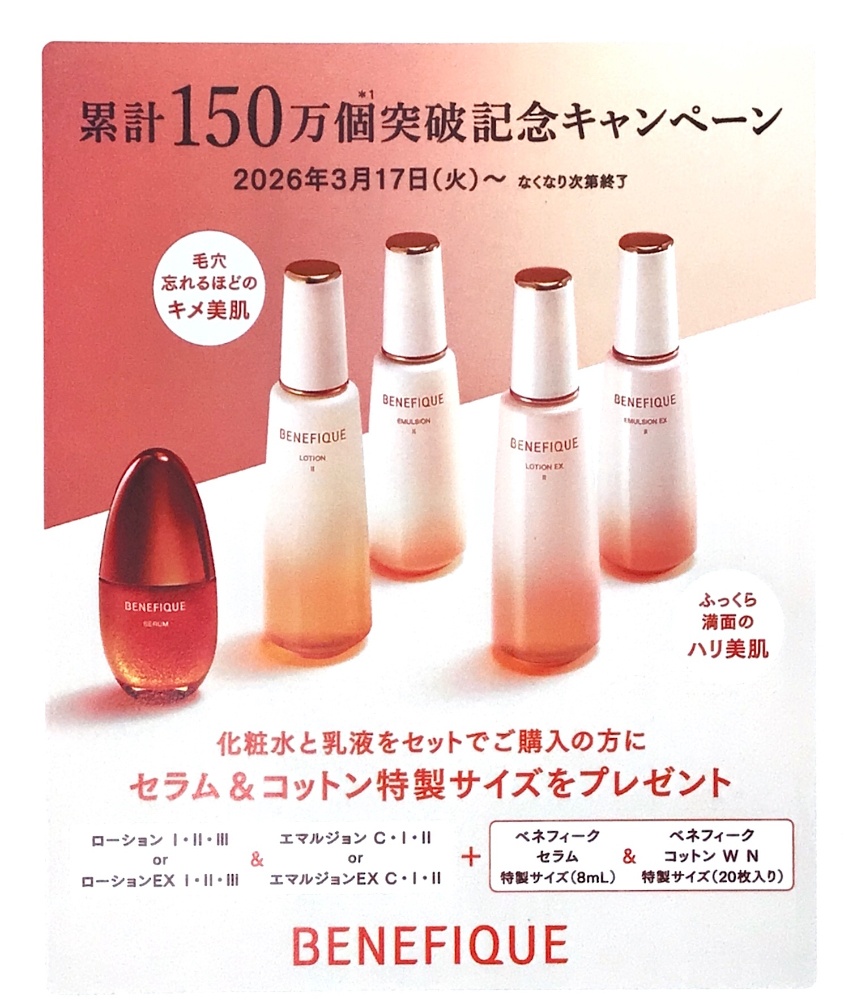 ベネフィークセラム&コットンW特製サイズプレゼント!